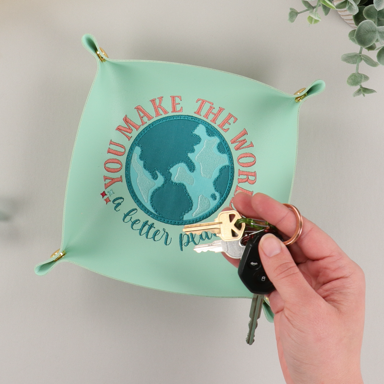 Create easy gifts and decor with Kimberbell Snap Trays! Made from faux leather PVC, these embroiderable blanks easily snap together to form a tray. Add your favorite design, then snap the corners
