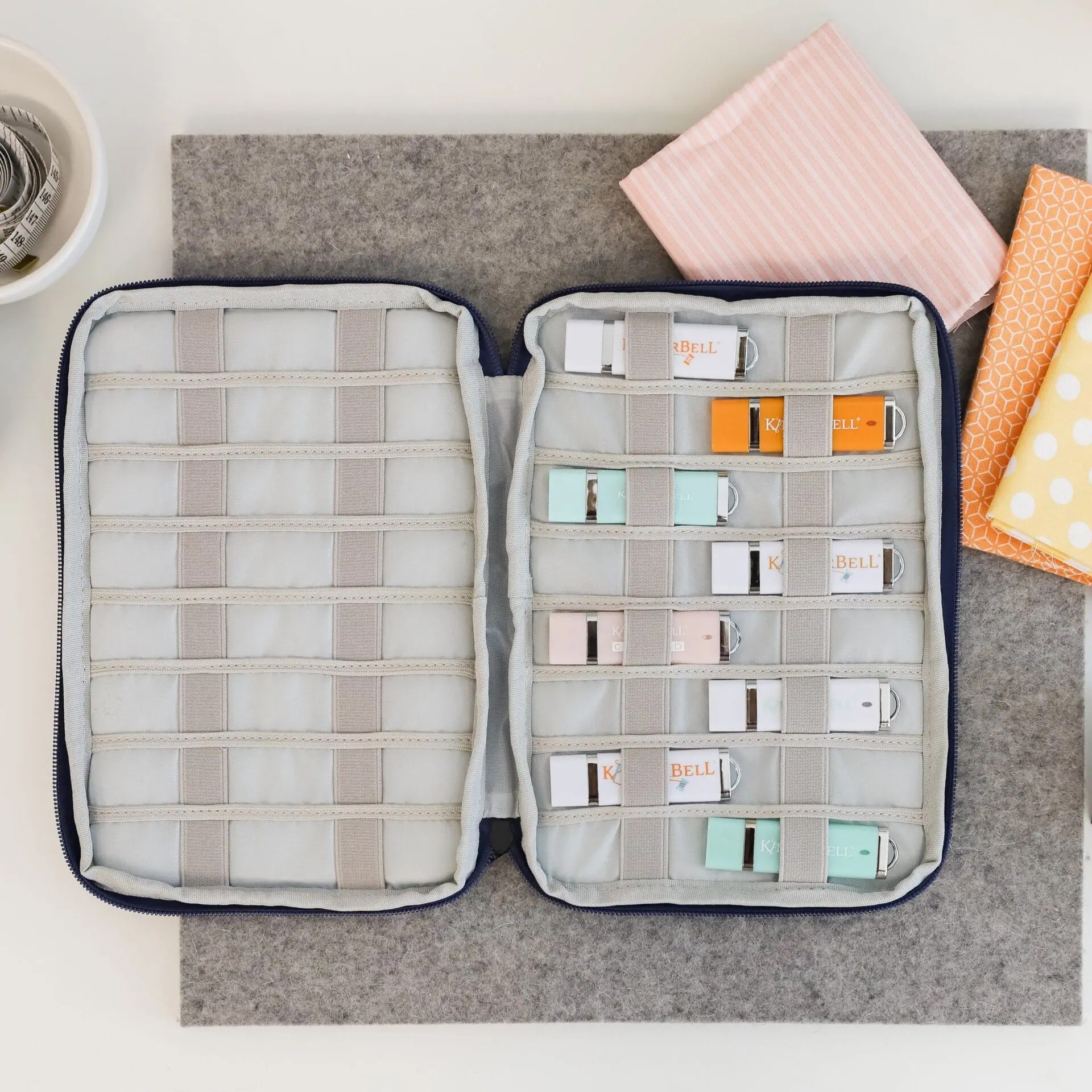 Store your machine embroidery flash drives in the Navy Floral USB Case! Designed to match our Navy Floral Tape Dispenser,our coordinating storage pouch is thick, fully lined, and features wide elastic bands that securely hold up to 32 drives. Slip each drive into its place, then zip the pouch up with the sturdy zipper! When you have a “notion” to keep better track of your files, the Navy Floral USB Caseis your sweet solution.
