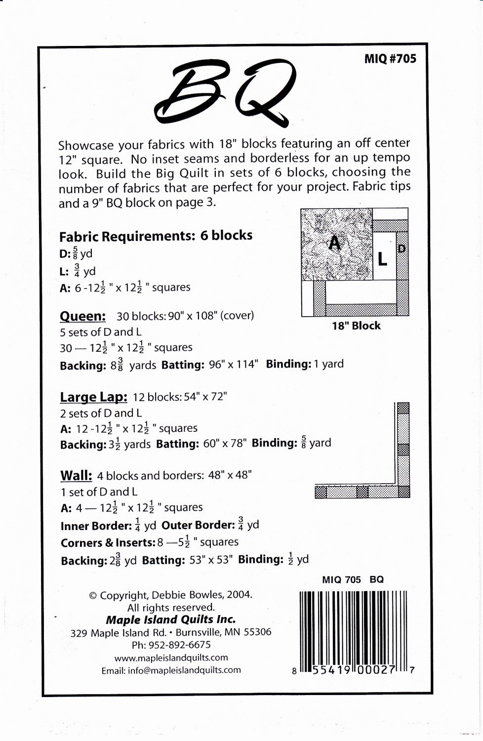 Showcase your fabrics with 18" blocks featuring an off center 12" square. No inset seams or borderless for an up tempo look.
