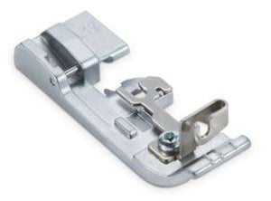 The Cording Foot is used e.g. for sewing thin cord, wire, fishline, perle yarn or fine yarn into a rolled hem. Ideal for reinforced edges, decorative ruffles and shapeable knitted bands. For cords up to a max. diameter of 2mm