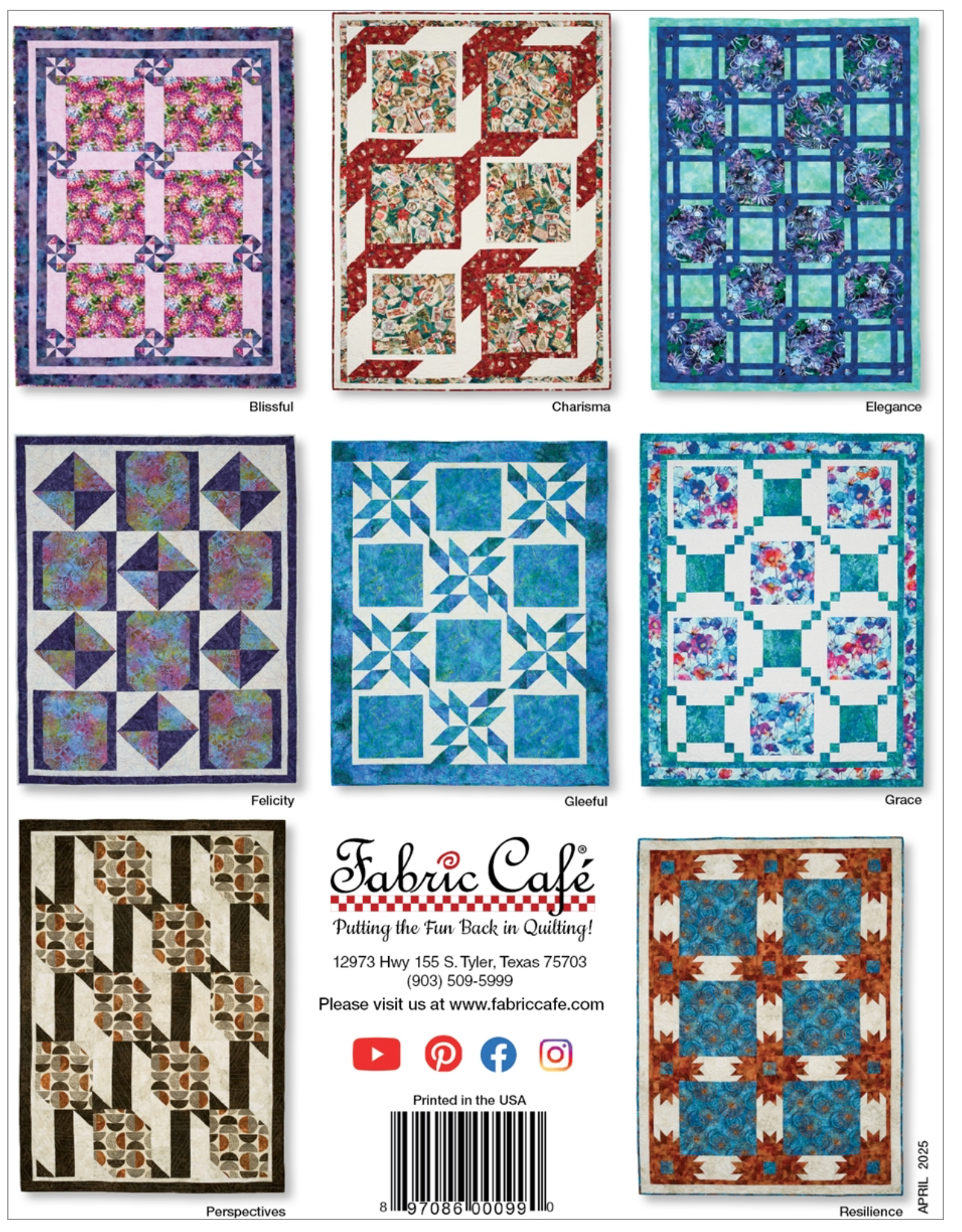 • Each quilt only requires three 1-yard cuts of 44/45" fabric for quilt top, borders, and binding.