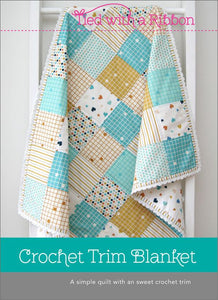 This simply pieced quilt is all about the delicate and beautiful Crochet Trim edging. The Quilt can be quickly pieced and then with 3 simple crochet stitches add your sweet Scallop Trim to your quilt. This makes a stunning gift to celebrate a new arrival or perfect as a quilt for a toddler.