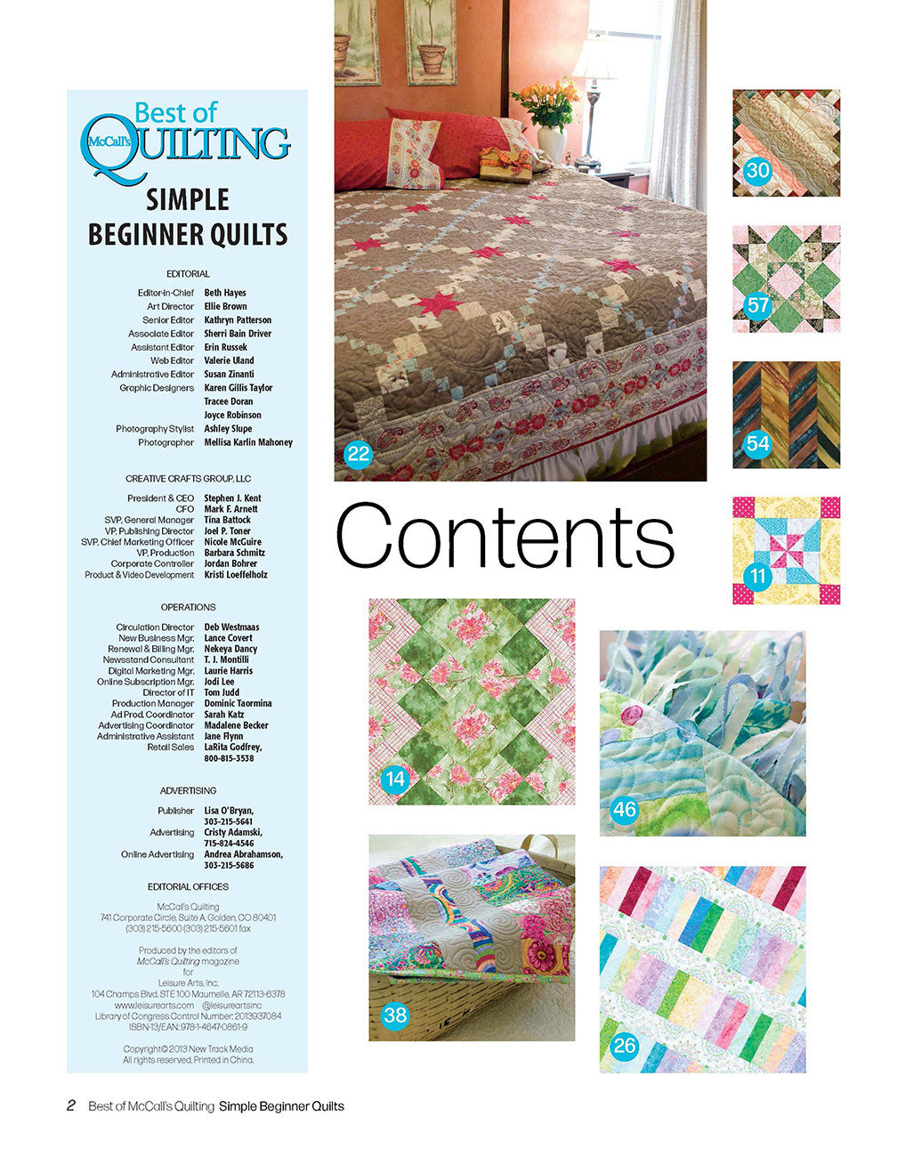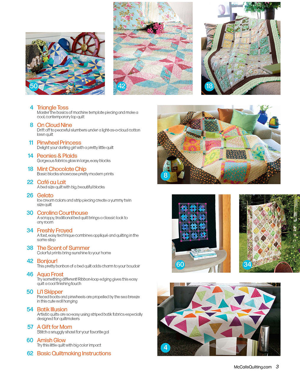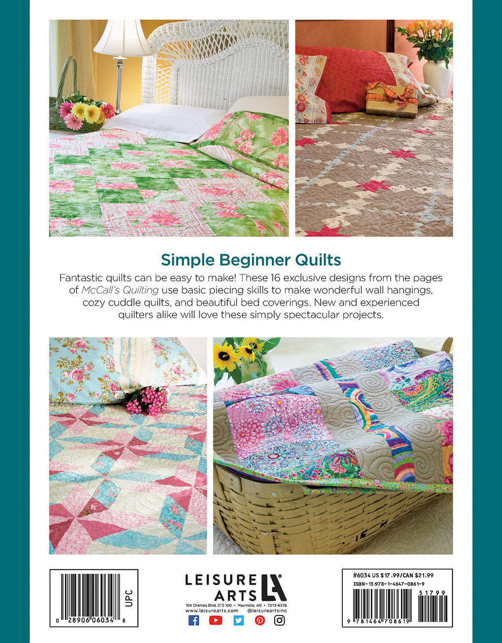 Fantastic quilts can be easy to make! These exclusive designs from the pages of McCall's Quilting use basic piecing skills to make wonderful wall hangings, cozy cuddle quilts, and beautiful bed coverings. New and experienced quilters alike will love these simply spectacular projects. 16 Designs: Triangle Toss; On Cloud Nine; Pinwheel Princess; Peonies & Plaids; Mint Chocolate Chip; Cafe au Lait; Gelato; Carolina Courthouse; Freshly Frayed; The Scent of Summer; Bonjour!; Aqua Frost; Li'l Skipper; Batik Illusion; A Gift for Mom; and Amish Glow.