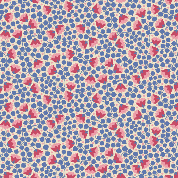 43/44 width, 100% high quality cotton OEKO-TEX Class 1 Certified. TTilda Fabric's Wallflower collection is designed by Norwegian designer Tone Finnanger. "Wallflower is an ornamental collection loosely inspired by and my somewhat romantic take on design styles popular in the 1960s and 70s." The collection has two distinctive color stories. One is sweet and fresh with vintage reds, greens and pinks with hints of blue and sour yellow. The other is more of a nod to the 1960s and 70s, with caramel, blue, ginger, ochre and thistle tones. The sweet Bellflower blenders complement the main collection perfectly.
