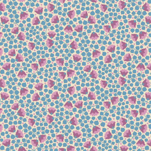 43/44 width, 100% high quality cotton OEKO-TEX Class 1 Certified. TTilda Fabric's Wallflower collection is designed by Norwegian designer Tone Finnanger. "Wallflower is an ornamental collection loosely inspired by and my somewhat romantic take on design styles popular in the 1960s and 70s." The collection has two distinctive color stories. One is sweet and fresh with vintage reds, greens and pinks with hints of blue and sour yellow. The other is more of a nod to the 1960s and 70s, with caramel, blue, ginger, ochre and thistle tones. The sweet Bellflower blenders complement the main collection perfectly.