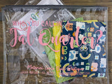 Zipper Vinyl Organizer: 11" wide x 8.75" tall with a half slip pocket on the back Grey Zipper, Clear Vinyl, Pink Printing